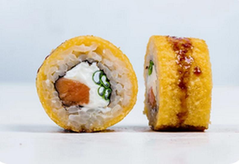 Состав: Лосось, сыр сremette, зелёный лук, в темпуре и сухарях.