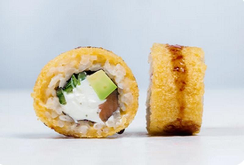 Состав: Угорь, лосось, сыр сremette, огурец, авокадо, в темпуре и сухарях, соус унаги.