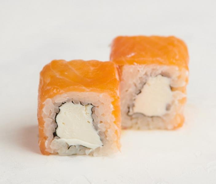 Очень классная альтернатива обычной филадельфии, ролл как будто кварратный и рыбки внизу нет.