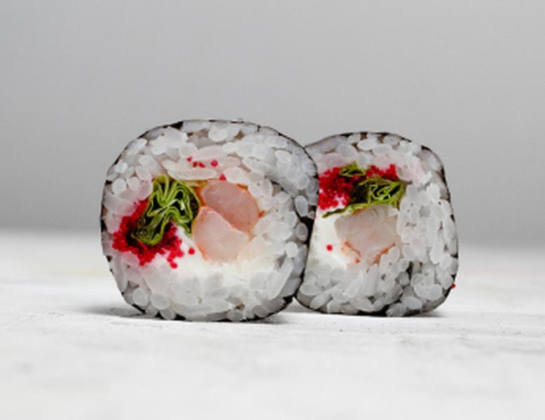 Состав: Креветка, икра тобико, сыр сremette, лист салата.
