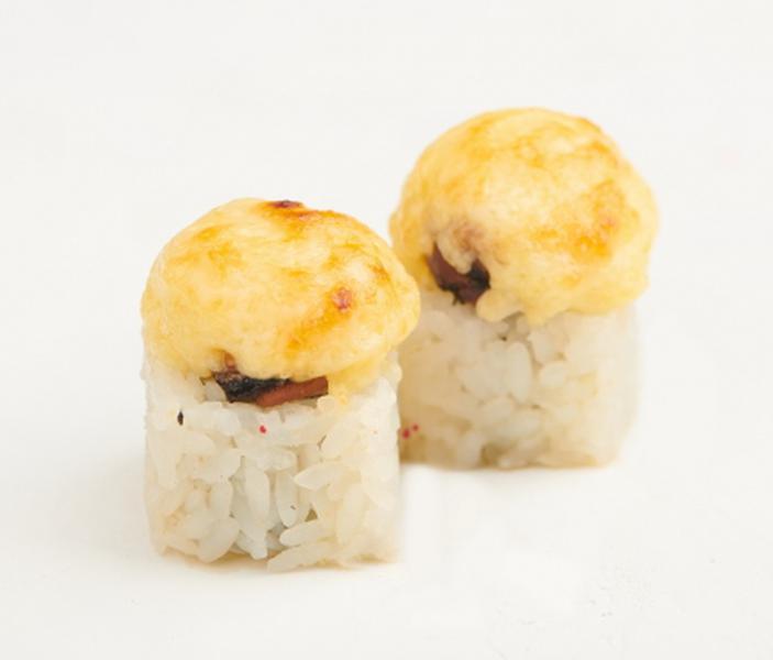 Состав: Запечённый ролл. Сыр сremette, мидии, сыр, майонез.