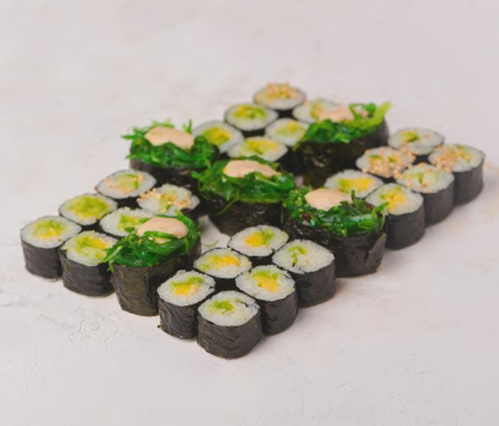 Состав: Вакаси ролл, Каппа маки, Авокадо ролл, Суши гункан чука *товар на фото может отличаться от оригинала