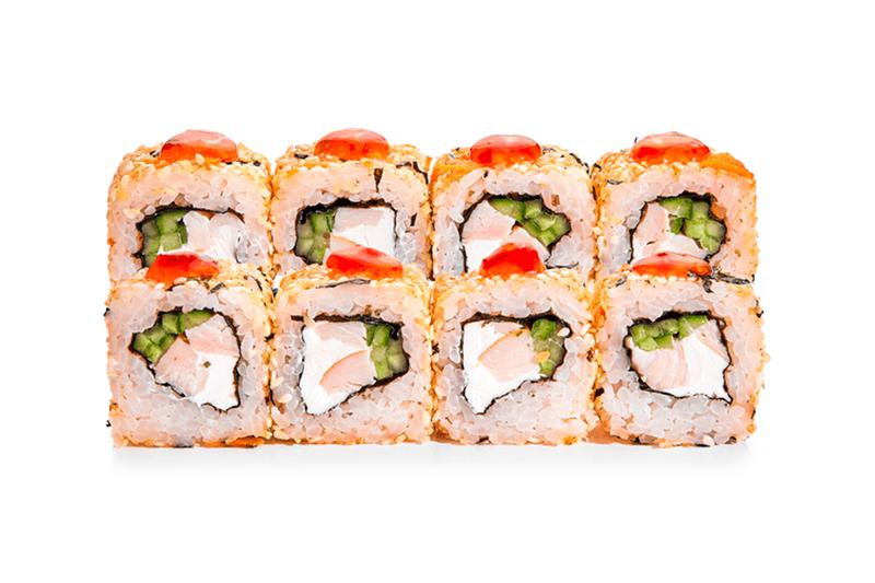 Состав: Рис, нори, сыр сливочный, огурец, курица хк, фурикаке, соус никей