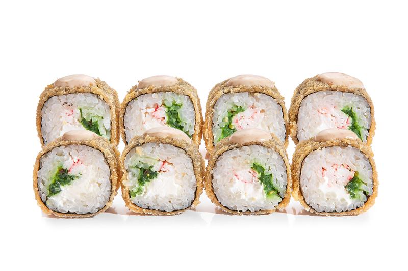 Состав: Крабовая палочка, сыр сливочный, чука, кляр темпурный, соус ореховый