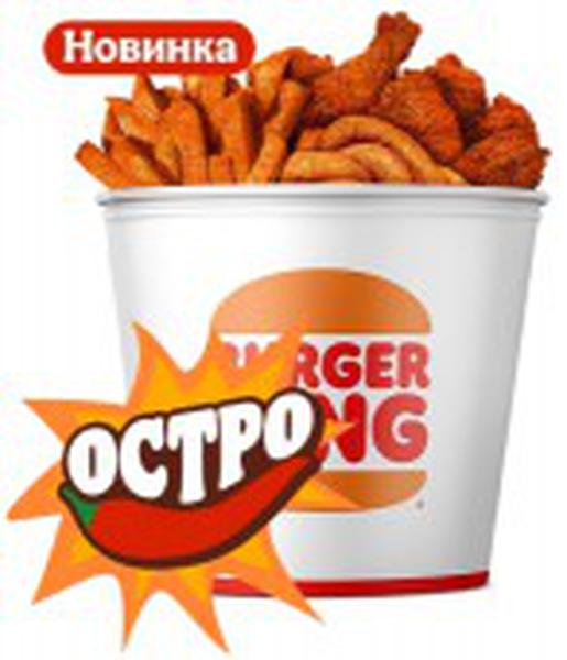 Состав: Острая тема! Большая порция крылышек (10 шт.), луковых колечек (10 шт.) и золотистого картофеля — с тремя пакетиками «Острой штуки», нашей новой приправы с огоньком. Чтобы перемешать закуски с «Острой штукой», используй приложенные бумажные Шейкеры — это прикольно! Переложи в них закуски, засыпь приправу и хорошенько потряси. Будет хот